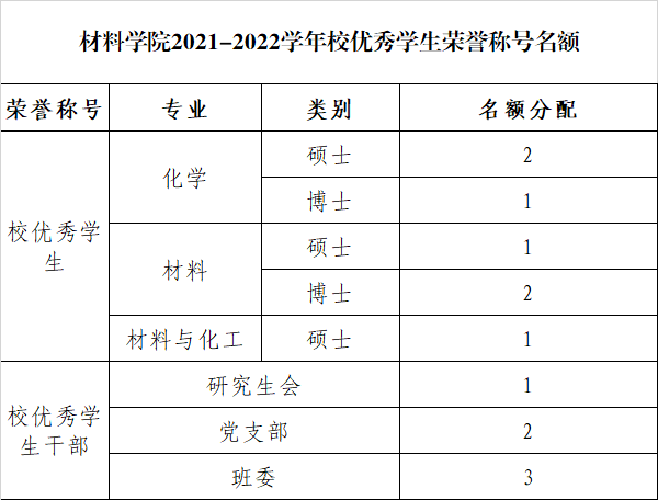 关于材料学院2021-2022学年研究生校级荣誉称号拟推荐名单的公示