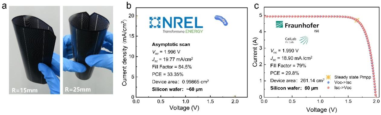 工作一:双缓冲层结构实现高稳定性全硅片尺寸柔性叠层电池