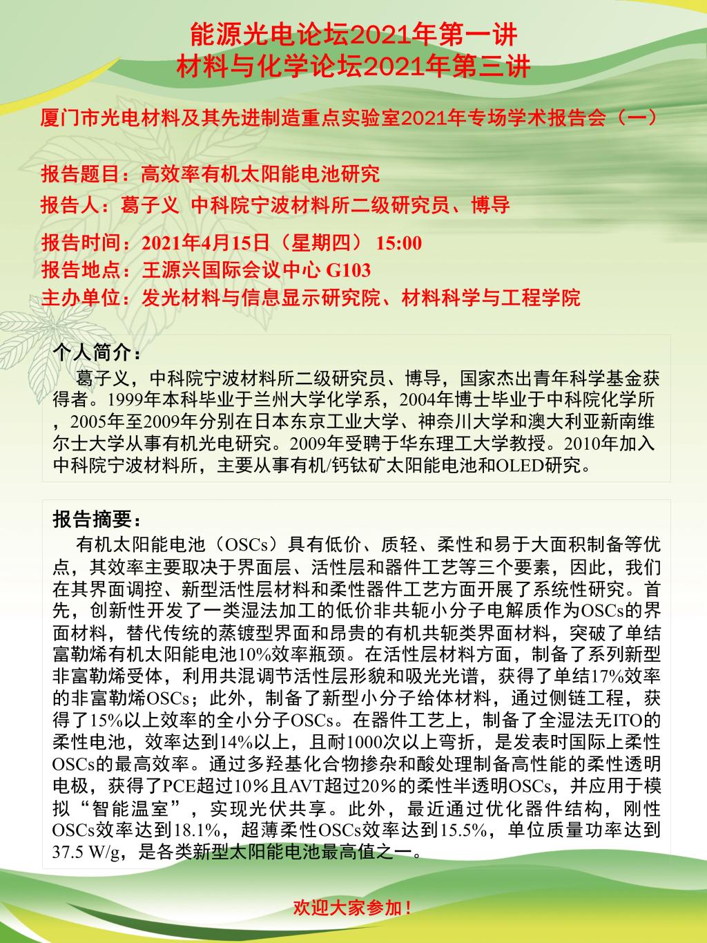 能源光电论坛2021年第一讲&材料与化学论坛2021年第三讲