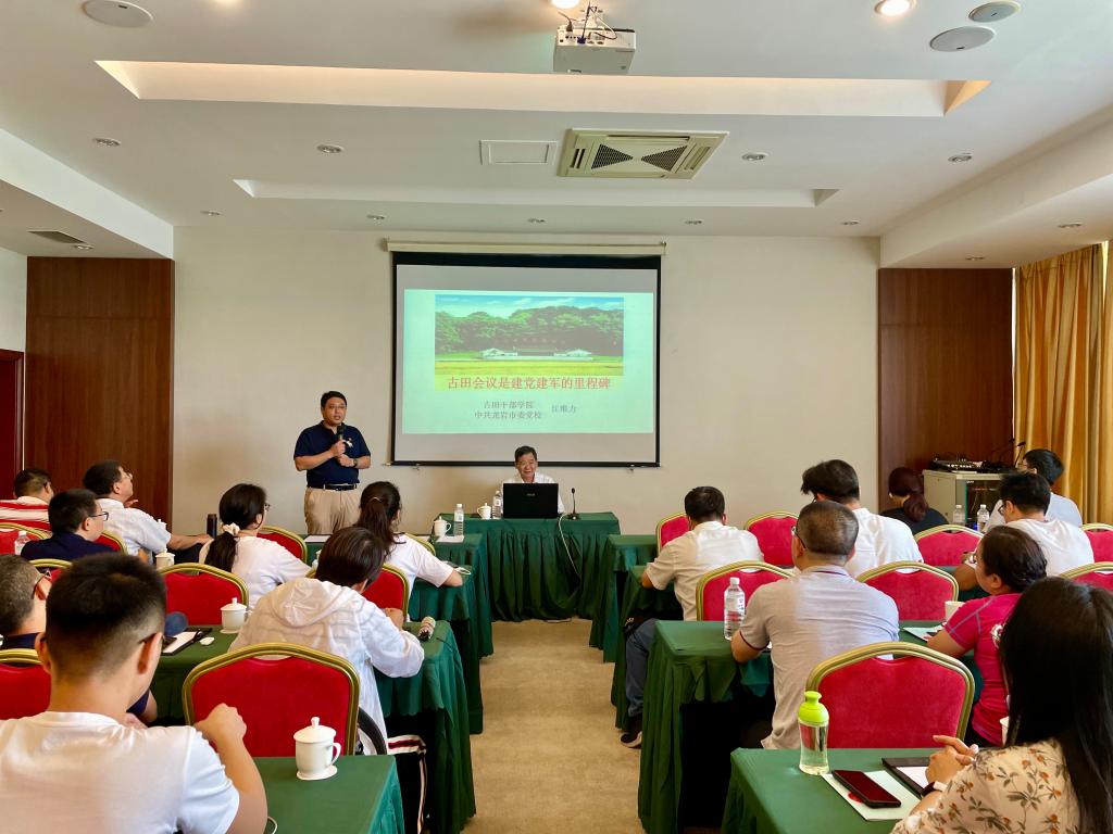 当日下午,学院党委邀请原龙岩市委党校常务副校长江维力教授作主题为《古田会议是建党建军的里程碑》专题党课。江维力用风趣幽默的语言、生动鲜活的事例,深入浅出地从古田会议的召开背景、会议决议、重要意义、历史贡献以及新古田会议等方面进行讲解,教育引导大家学党史、悟思想、办实事、开新局。课后的交流学习体会中,大家一致认为,本次党课内容详实,具有很强的震撼力、感染力。现场教学和理论学习,使同志们深刻认识到共产党在领导革命战争中的艰辛与曲折,深刻认识到党的先进性和共产党人的优良品格,也使自身的党性修养得到了一次淬炼和提升。
