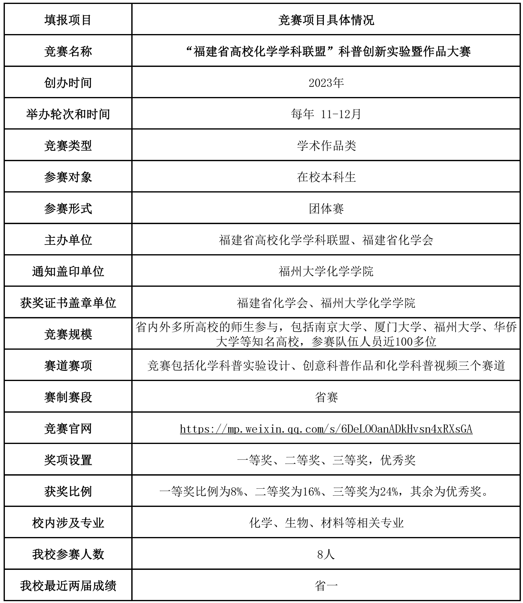 【竞赛介绍】“福建省高校化学学科联盟”科普创新实验暨作品大赛