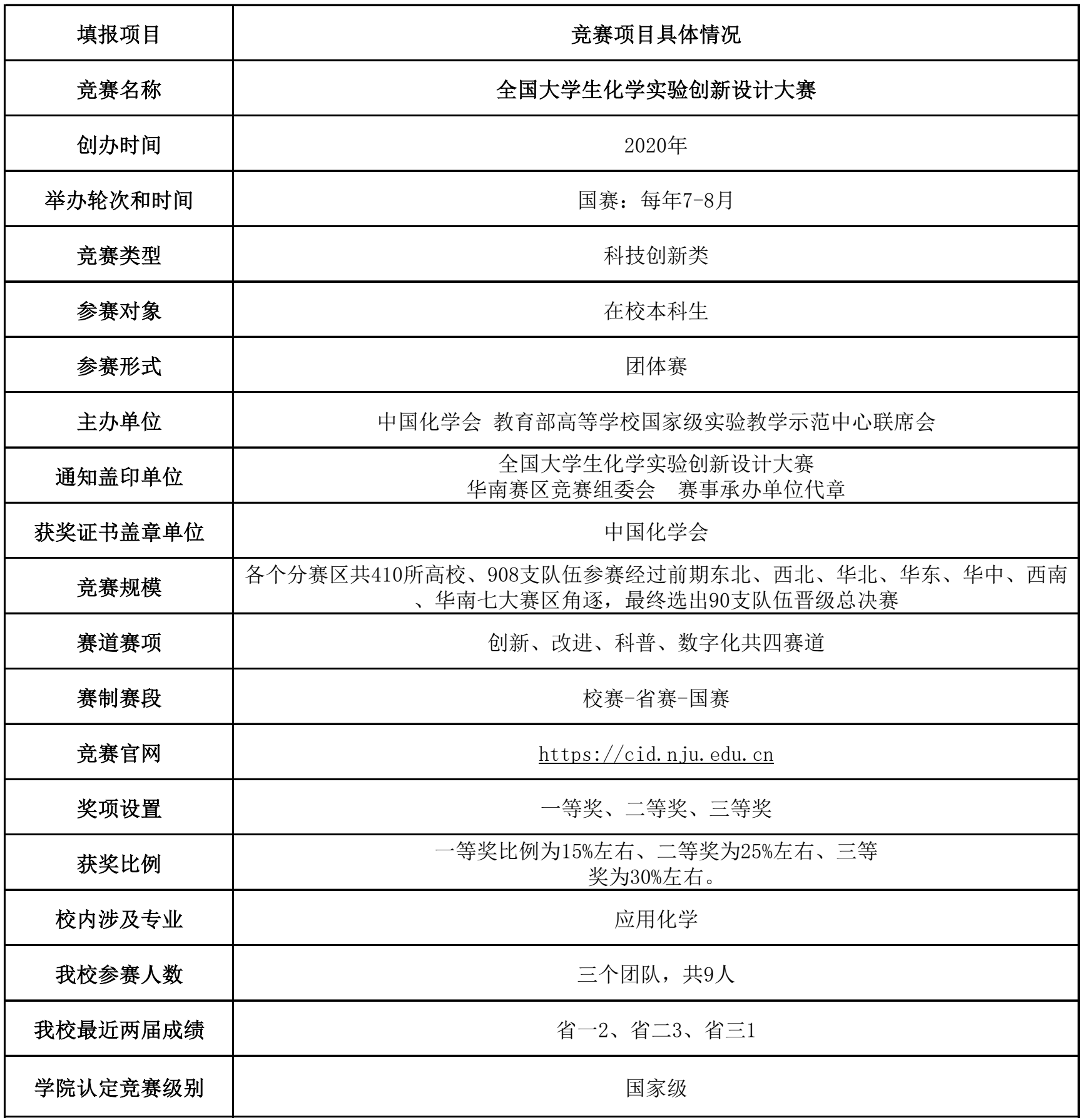 全国大学生化学实验创新设计大赛是由中国化学会和教育部高等学校国家级实验教学示范中心联席会主办的全国性大学生化学类和近化学类专业多学科综合性竞赛。
